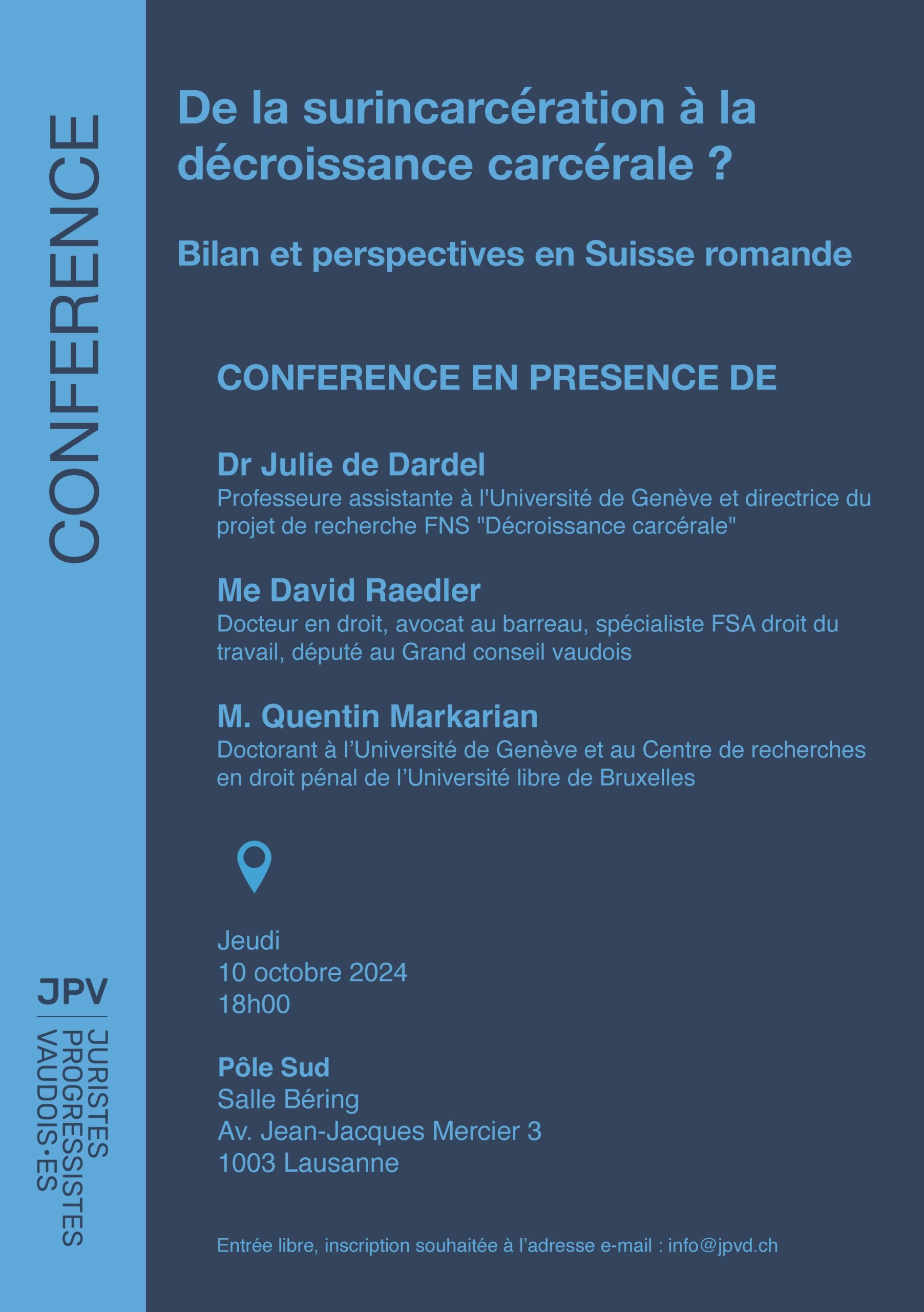 Inscription : à l’adresse e-mail info@jpvd.ch d’ici au 15 septembre 2023
